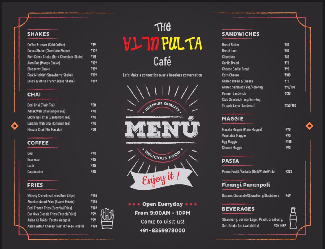 Whether you're a local or just passing through, Ulta Pulta Cafe & Lounge is a must-visit destination for food lovers and anyone seeking a place to relax. Make sure to stop by and create memorable moments over delicious food, delightful drinks, and an enchanting view!
